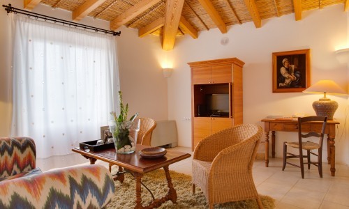 The exquisite apartments in Petit Santa Eulàlia allow you to enjoy all the services of a rural hotel while maintaining the independence of your own apartment. They are divided into a bright sitting area, terrace with table and chairs, private bathroom with amenities and bedroom. They are also equipped with television, minibar, desk, safe and free Wi-Fi. |