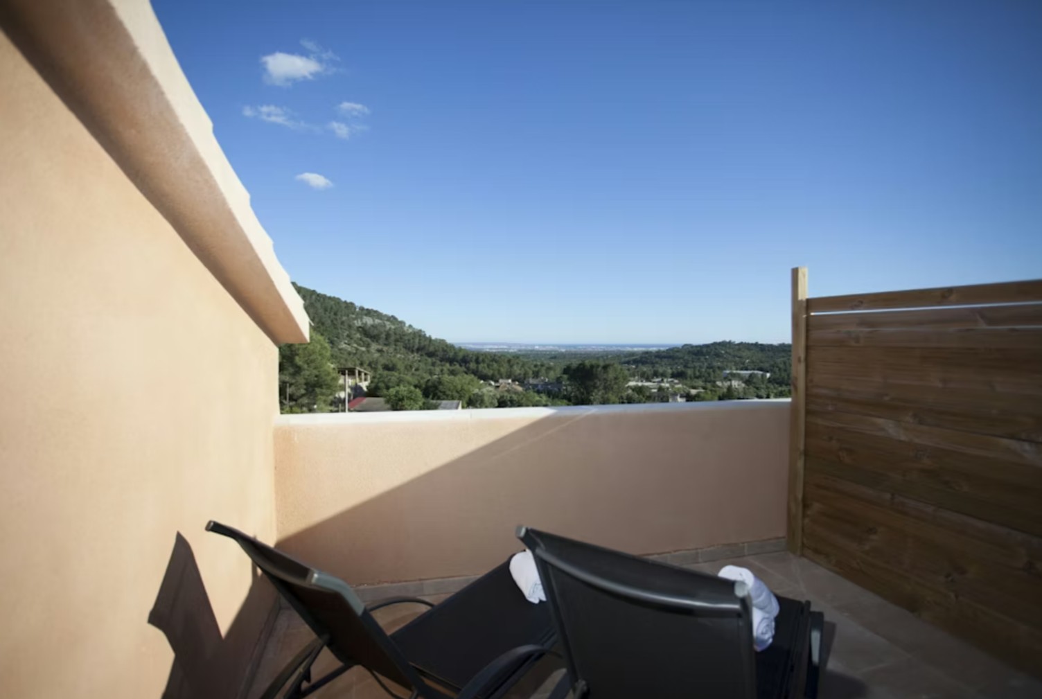 Es Corte Vell feels like a modern sanctuary shaped by its surroundings. The hotel’s design blends warm natural materials, soft contemporary lines and subtle Mallorcan accents, creating an atmosphere that is both refined and deeply relaxing. Many of the rooms open onto private terraces or the hotel’s serene garden, where you can enjoy sweeping views towards Palma and the rolling Tramuntana landscape.