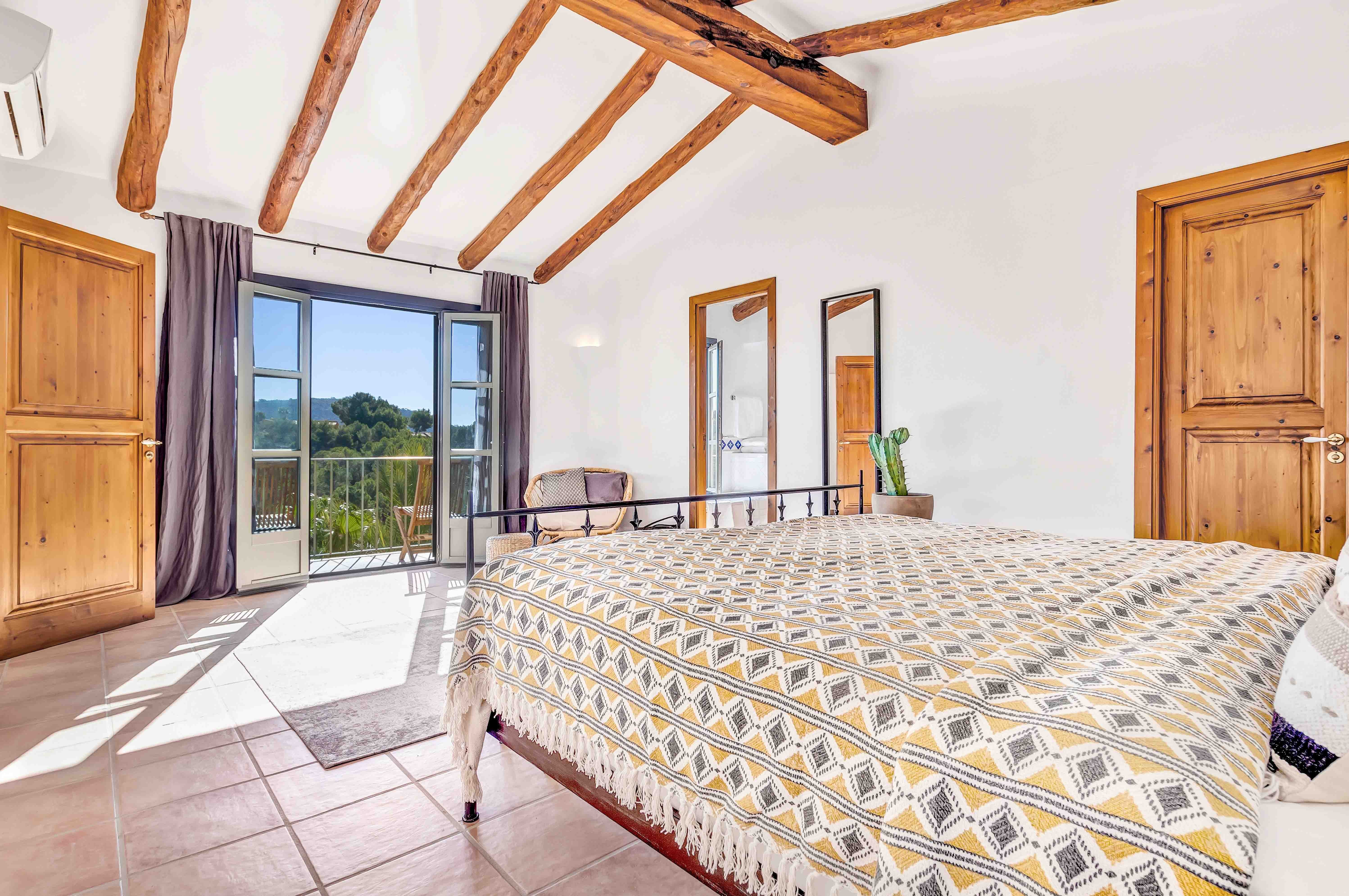 The are eight bedrooms across the whole property, comfortably sleeping up to 16 guests. Rooms are split between the main and guest house, with the largest being the master bedroom complete with sea-facing balcony; its ensuite bathroom also features a tub-with-views while you soak. Rooms in the main house all have sea views, too, while those in the guesthouse tend to open out to a pretty courtyard and lush gardens. All rooms either have their own bathroom room or are shared between two.