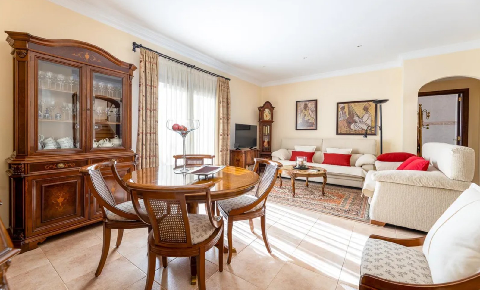 The ground floor beckons with a capacious dining-living room, a well-appointed kitchen with pantry, a double bedroom, and a full bathroom complete with a shower and bathtub. Abundant natural light defines this level, accentuated by numerous access points to the splendid terrace, featuring a convenient laundry area. The ground floor also presents an expansive garage, accommodating multiple vehicles, and a cistern.